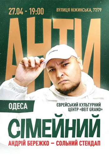 стендап АНТИСЕМЕЙНЫЙ. АНДРИЙ БЕРЕЖКО Одесса 2025-04-27 19:00 Зал для мероприятий Siniy Crab