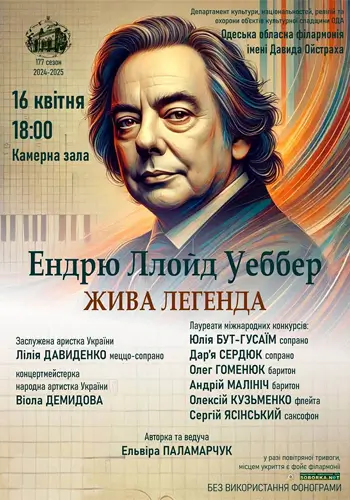Этой весной на сцене Одесской филармонии — событие, которое просто невозможно проигнорировать: концерт, посвященный одному из самых известных и влиятельных композиторов современности — Эндрю Ллойду Уэбберу. Человек, чье имя давно стало синонимом большого музыкального театра, композитор, изменивший представление о жанре мюзикла и доказавший, что музыка может одинаково мощно звучать и на Бродвее, и в душе каждого слушателя.