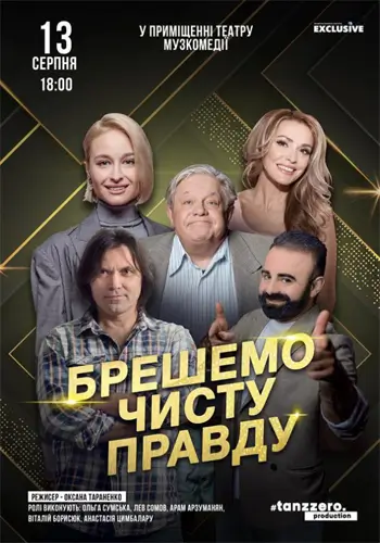 «Врем чистую правду» — это спектакль, который невозможно пересказать словами. Это калейдоскоп эмоций, взрыв энергии и полное театральное удовольствие, которое гарантированно останется у вас в памяти. Если вы ищете легкое, стильное и по-настоящему смешное представление — вам точно сюда.